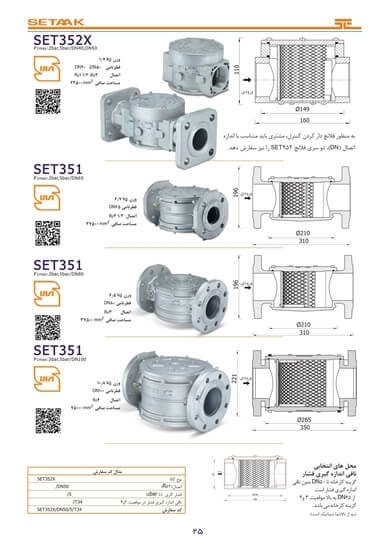 فیلتر گاز مدل SET351-DN80 تا فشار کاری 2bar و 5bar عرضه می شود.