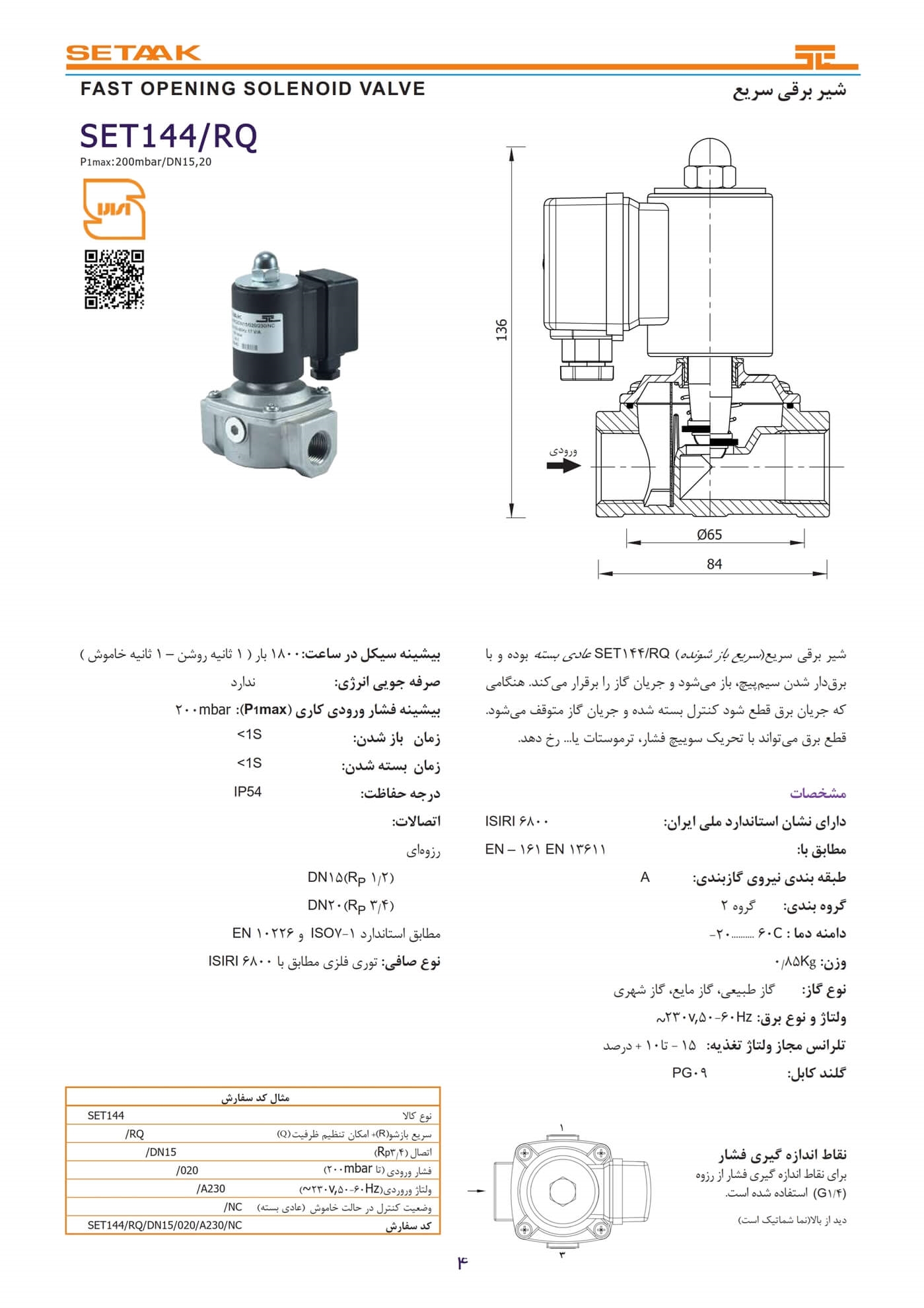 راهنمای شیر برقی سریع set144rq-dn15-20 1403