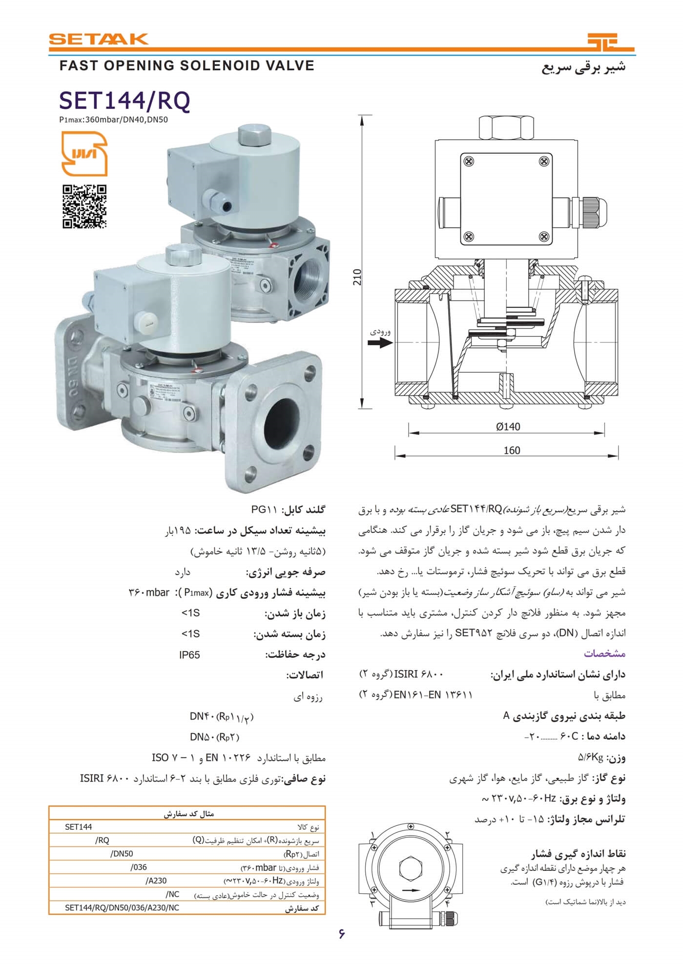 شیر برقی سریع | SET144/RQ-DN15-DN20