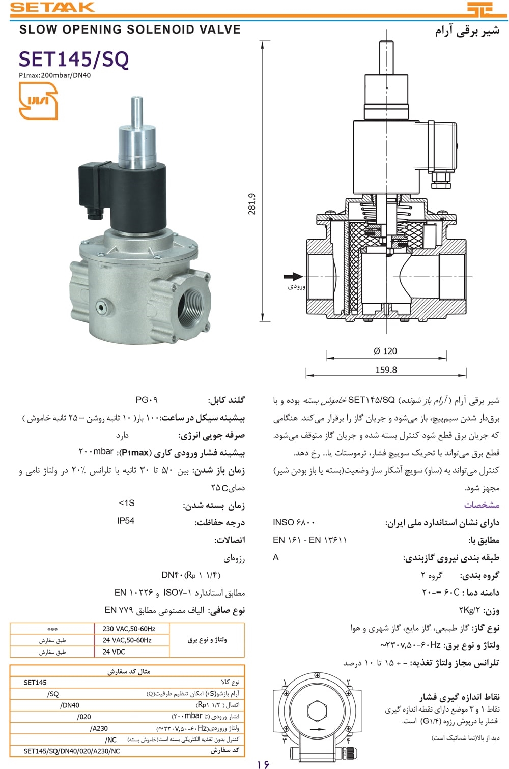 کاتالوگ شیر برقی آرام | SET145/SQ-DN40